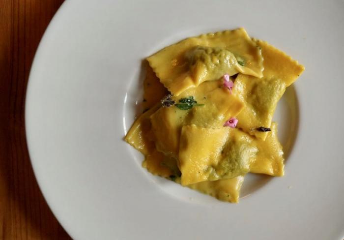 Tortelli verdi “alle erbe spontanee” con borragine, ortica, farinello con burro aromatizzato alla salvia sclarea
